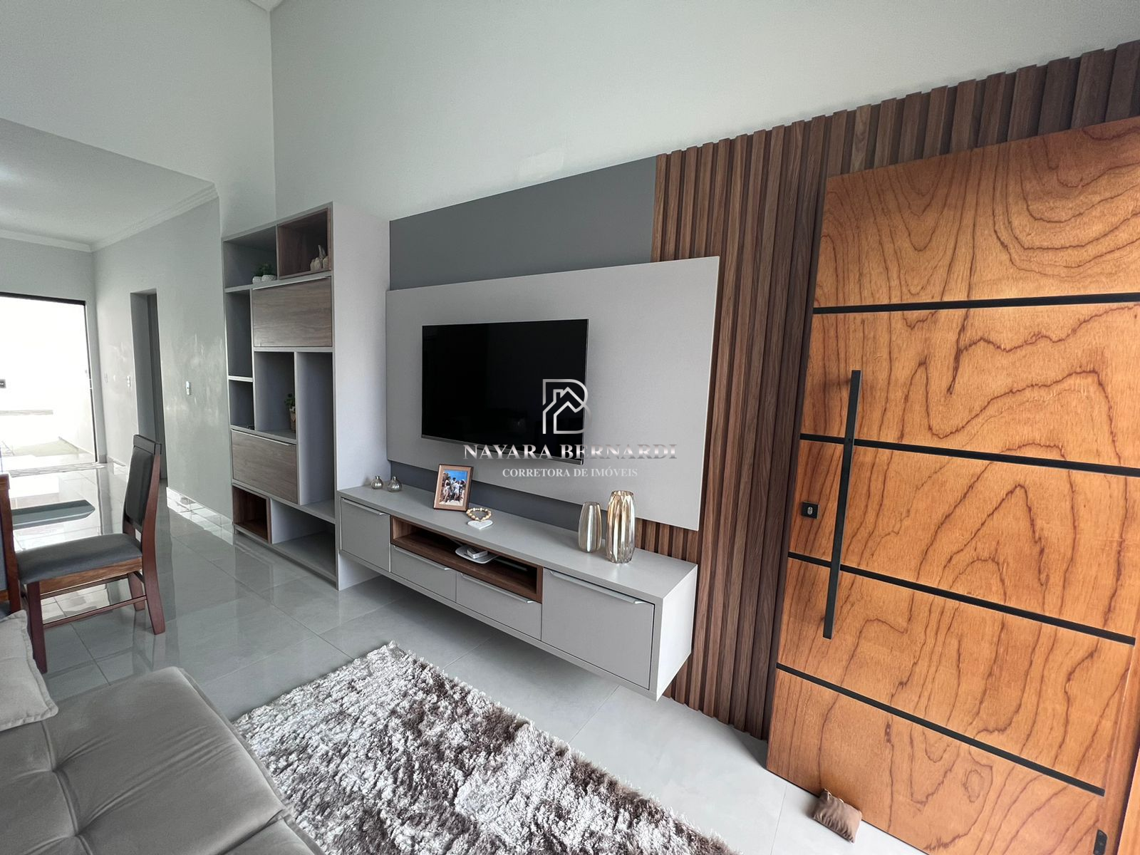 • Sala ampla com pé direito alto, conferindo sensação de espaço e luminosidade;